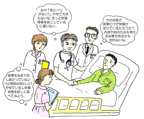 当院のNSTは、2003年12月より活動を始め、日本栄養治療学会・日本栄養療法推進協議会のNST稼働施設に認定されています。栄養状態が悪くなると、体の抵抗力が弱まり病気の回復が遅れます。