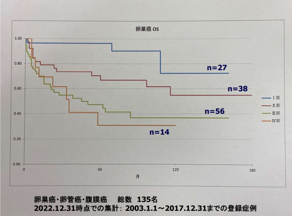 悪性腫瘍患者 ステージ別全生存率(当科のデータ)