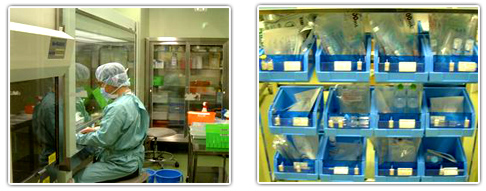 小児や抵抗力が落ちた患者さんのための特別な注射薬は、感染を防止するため、特に清浄な設備(無菌室)で混合しております。また、医師の依頼により市販されていない特殊な薬の製剤や調製をおこなっております。