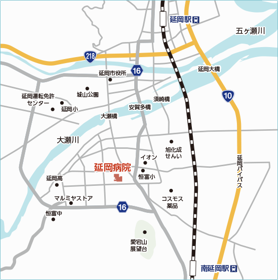 | 診療科目 | 内科、循環器内科、心療内科、精神科、小児科、外科、整形外科、脳神経外科、神経内科、呼吸器外科、心臓血管外科、皮膚科、泌尿器科、産婦人科・周産期科、眼科、耳鼻咽喉科、リハビリテーション科、放射線科、歯科口腔外科、麻酔科、救命救急科、臨床検査科、病理診断科、化学療法科、総合診療科 ※ 神経内科、心療内科、精神科は休診中 |