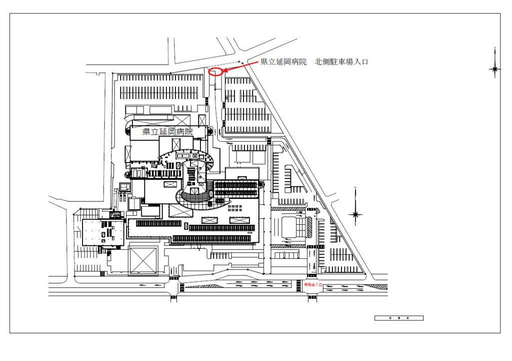 病院利用者以外の無断駐車を防止し来院される患者さん等の駐車スペースを確保するため、北側駐車場入口の平日夜間及び土日祝日の利用を制限することとします。
