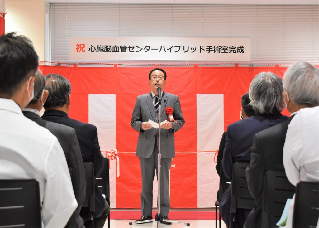 心臓脳血管センターハイブリッド手術室が完成し、令和6年2月7日に関係者を招いて完成披露式をおこないました。