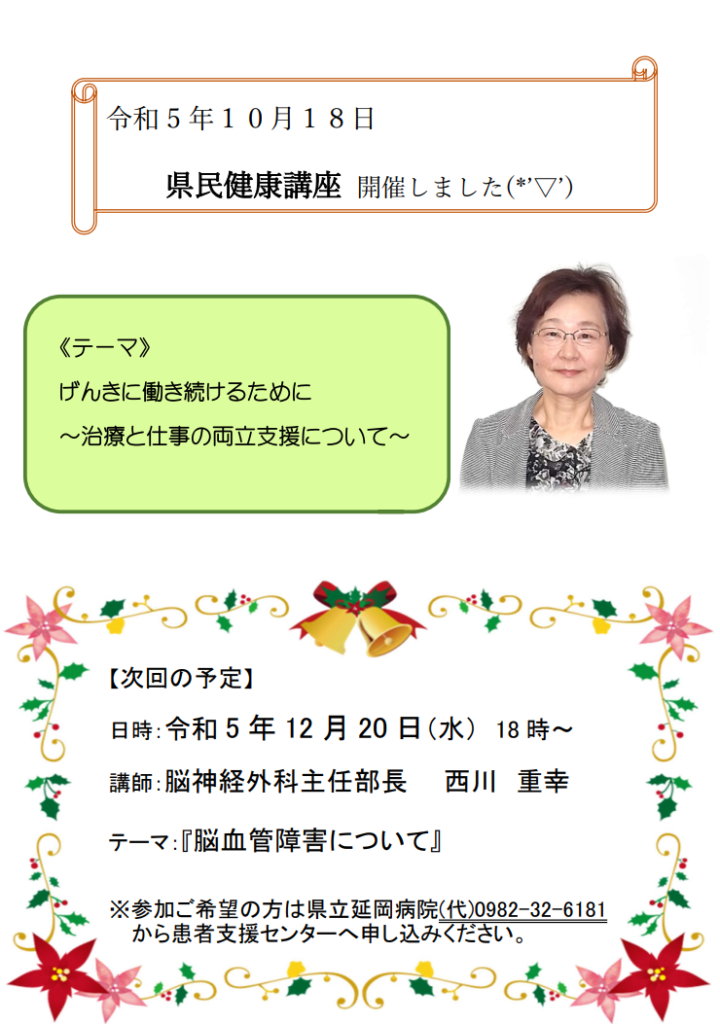 令和5年10月18日に県民健康講座(両立支援促進)を開催しました!