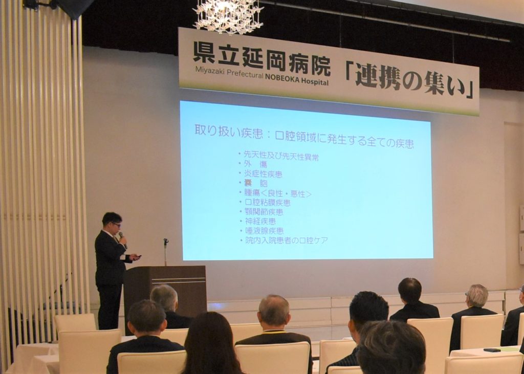 | 11月16日(木)、当院と地域医療機関が互いに関係を強化し、県北地域の医療連携を推進するため、交流会「連携の集い」を開催しました。 この交流会は、10月17日(火)に実施した地域医療機関との交流会「連携の集い」と同様、令和元年度に初開催して以来、4年振りの開催を迎え、当日は総勢60人近くの歯科医療関係者が集まりました。 交流会では、本院の歯科口腔外科及び救命救急科より、当院の取組や今後の展望等について紹介したほか、歯科医療関係者同士の交流・意見交換をおこないました。 今後も地域の歯科医療機関の先生方と「顔の見える関係」を構築し、より一層連携を深めていきたいと思います。 |