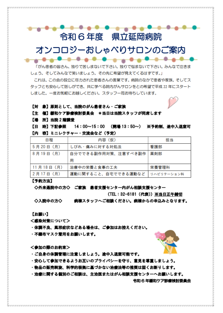 オンコロジーおしゃべりサロン-令和6年度のご案内-