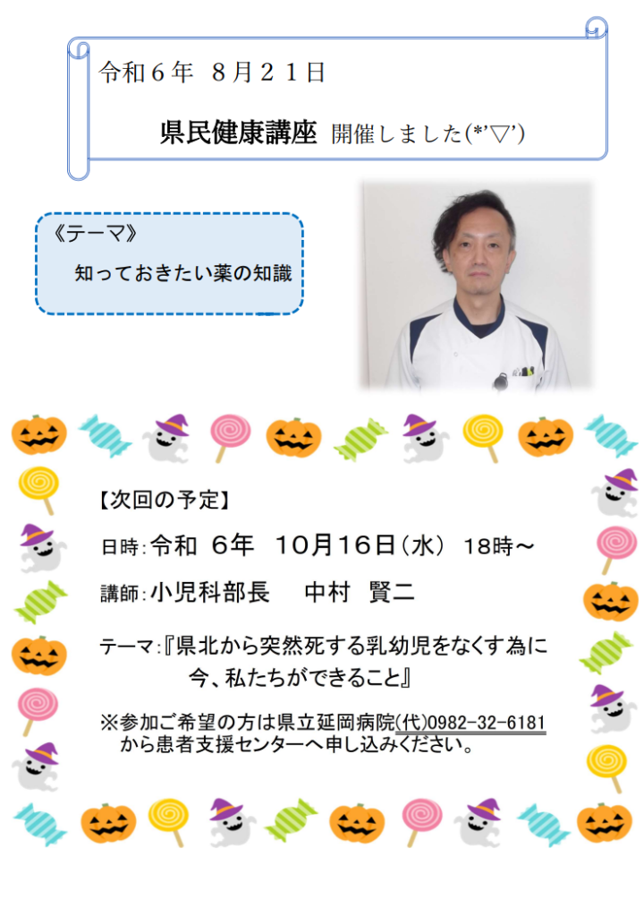 令和6年8月21日に県民健康講座(薬剤部)を開催しました!