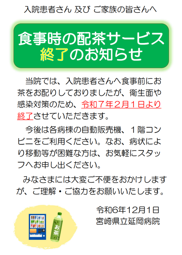 食事時の配茶サービス終了のお知らせ