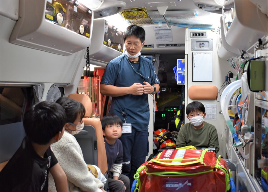 贈呈式の終了後、子どもたちは救命救急センターにてドクターカーを見学し、興味津々な様子でした。