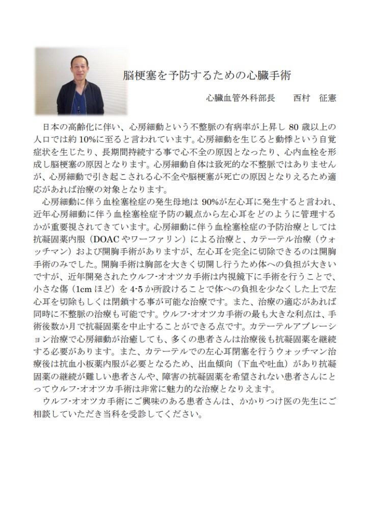 ホーム新着情報お知らせ令和7年12月17日に県民健康講座(心臓血管外科)を開催しました! 令和7年12月17日に県民健康講座(心臓血管外科)を開催しました! 2026.01.07 次回の県民健康講座 お知らせ一覧