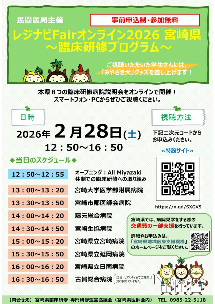 民間医局レジナビフェアオンライン2026 宮崎県 ~臨床研修プログラム~
