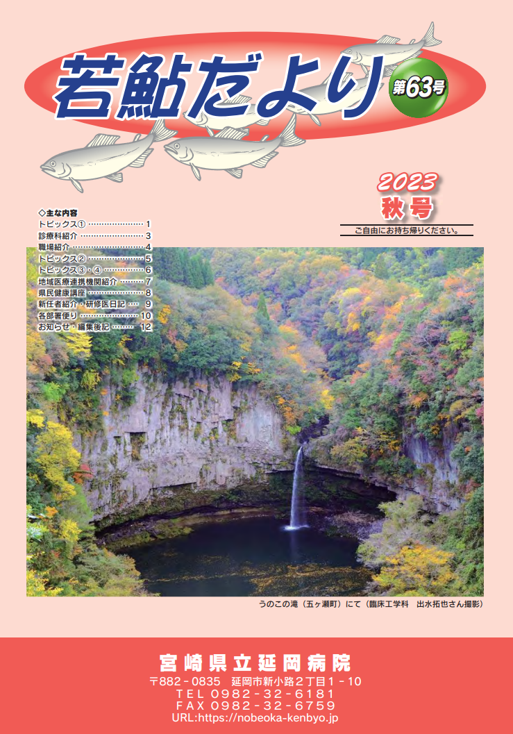 表紙は、高千穂峡にて【臨床工学科 出水 拓也さん 撮影】です。
