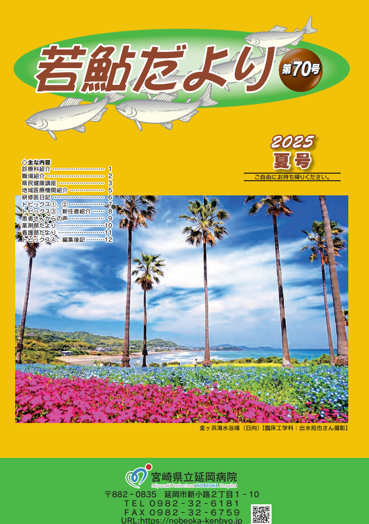 表紙は、金ヶ浜海水浴場(日向)【臨床工学科 出水 拓也さん 撮影】です。