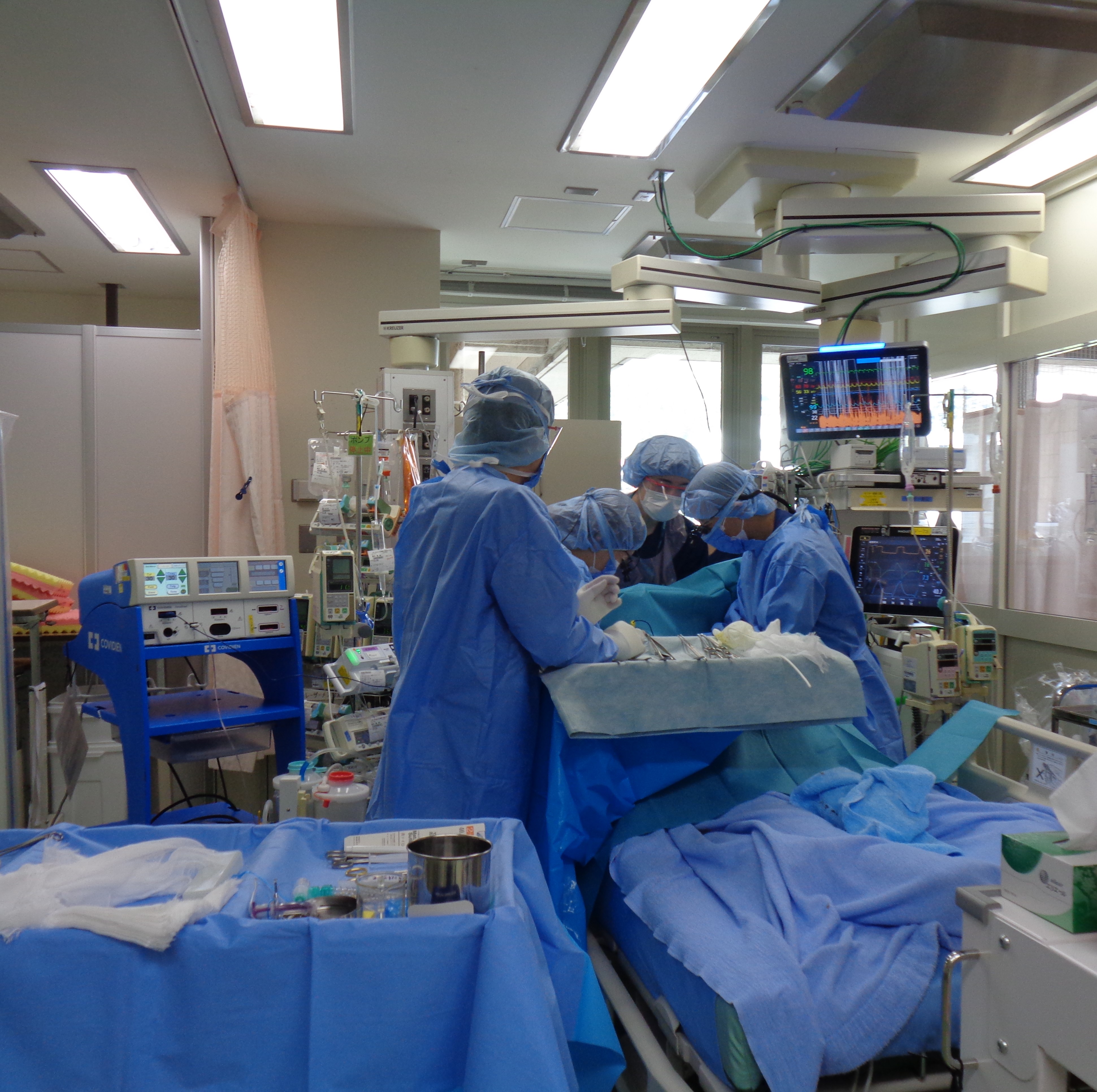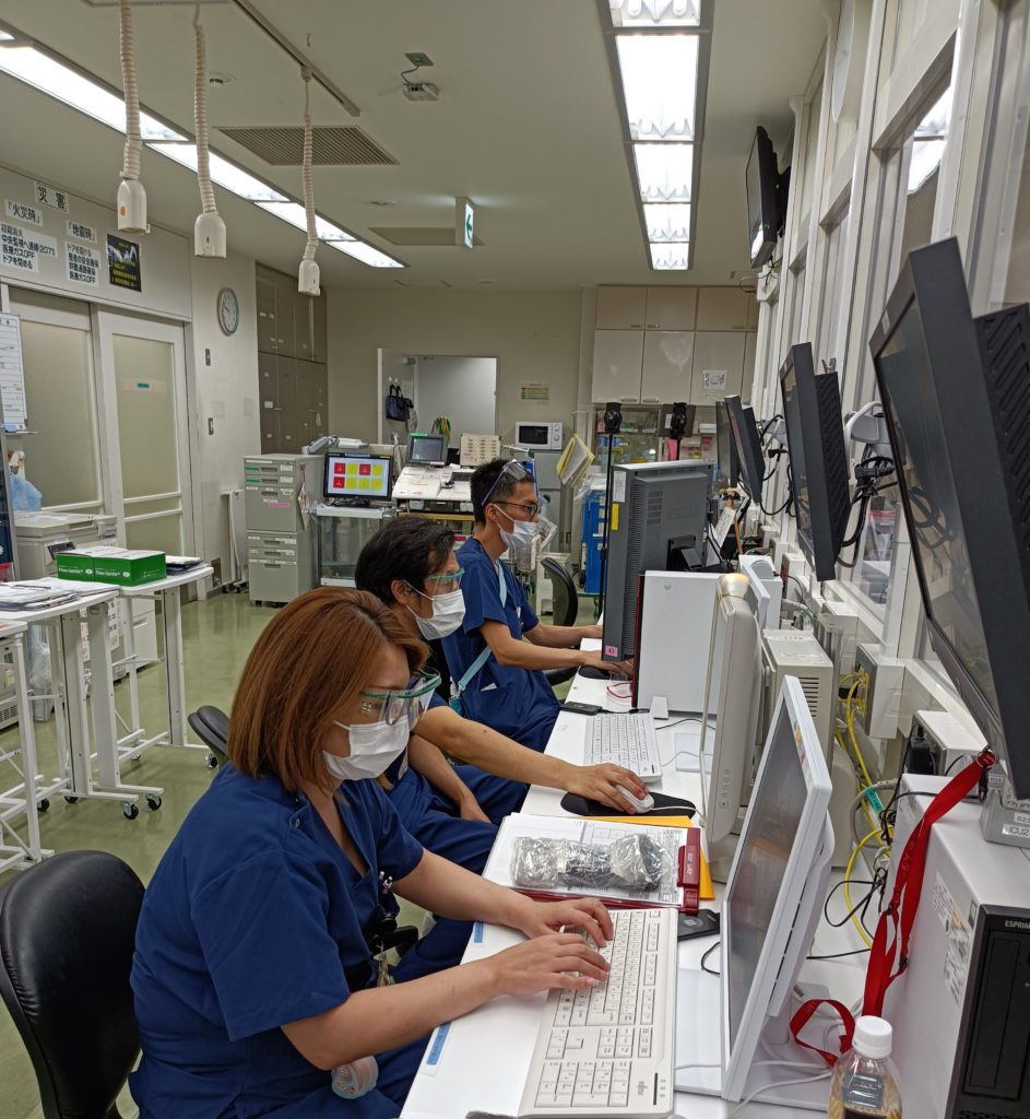 集中治療センターは、診療科を問わず全身管理が必要な患者さんに対し、医師・看護師・臨床工学技士等が協力しながら、集中的かつ強力的に専門性の高い治療・看護を提供しています。看護体制は、日中は患者さん1名に対し看護師1名が担当をし、夜勤帯は看護師3名の勤務体制となっています。
