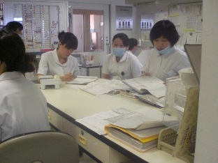 定例の手術に加え、緊急の入院や手術も多く、平日ほぼ毎日のように手術があります。毎週火曜日には、医師・看護師・理学療法士(OT、PT)・地域連携スタッフ・病棟管理栄養士を交え、総合回診が行われます。また、金曜には、医師・看護師・理学療法士(OT、PT)を交えてフィルムカンファレンスを行い、情報交換やリハビリの進捗状況や今後の治療計画について共有しています。また、大腿骨頸部骨折の患者さんは地域連携パスを使用し、回復期リハビリ病院への早期連携を行っています。高齢の患者さんが多く、寝たきりにならないように早期離床を図り、デイケアを行う事で、患者さんが少しでも笑顔で過ごせるようにスタッフ一同頑張っています。これからも安全で温かい心の通う看護が提供出来るように努力していきたいと思います。