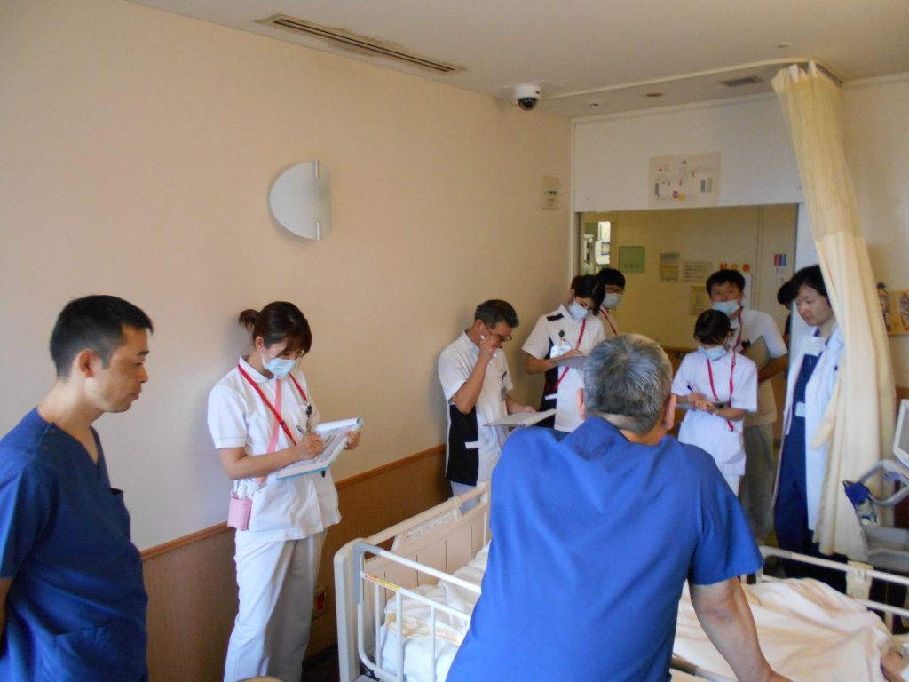 脳神経外科、救命救急科ともに病状の変化が大きいことや日常生活に援助が必要な患者さんが多い病棟です。脳神経外科は毎週、医師・看護師・退院支援スタッフ・理学療法士・作業療法士でカンファレンスを開催しています。救命救急科は、医師と看護師が毎朝ミーティングをおこない患者さんの症状に応じた早い対応を実践しています。いずれも患者さんの持てる力を信じ、その先の生活を考えながら多職種で協力し支援しています。