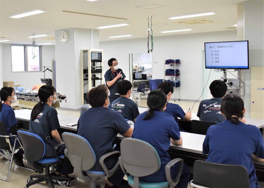ホーム 医学生の皆様へ 当院の研修の特色 研修医セミナー 研修医セミナー 当院では、Off the Job Trainingの一環として,「救急」をテーマに16診療科の専門医が講義を行う「研修医セミナー」を月2回(第2、第4月曜日)開催しています。(24回/年) 整形外科 救命救急科 産婦人科・周産期科 当院の研修の特色 縫合コンテスト 研修医セミナー 募集要項 病院見学のご案内 延岡病院の紹介 当院の研修の特色 医学生・研修医へのメッセージ 研修プログラム概要 研修医・医学生の声・研修医ブログ 各種パンフレット 研修医募集MOVIE 宮崎県立病院群フェニックスプログラム 研修に関するお問い合わせ 病院見学やクラークシップを希望される方・ご質問のある方は、ご連絡ください。 〒882-0835 宮崎県延岡市新小路2-1-10 県立延岡病院 医事・経営企画課 経営企画担当 中島 E-mail:nakashima-kotaro@pref.miyazaki.lg.jp 電話:0982-32-6625 FAX:0982-32-6759